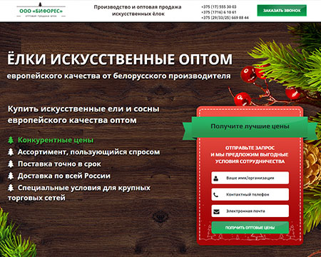 Производственная компания ООО "Бифорес" с 2008 занимается изготовлением теплоизоляционных базальтовых цилиндров, термочехлов теплоизоляционных быстросъемных. С 2009 года мы наладили промышленный выпуск искусственных ёлок. С 2014 года производим теплицы из поликарбоната и беседки в Беларуси. Нашу продукцию покупают в России, Украние и других странах СНГ.